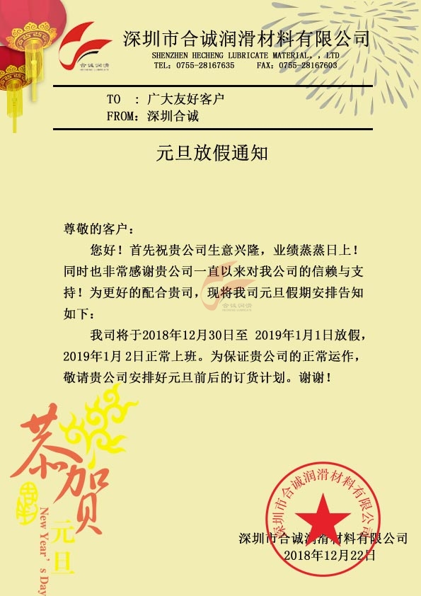 深圳合誠元旦放假通知