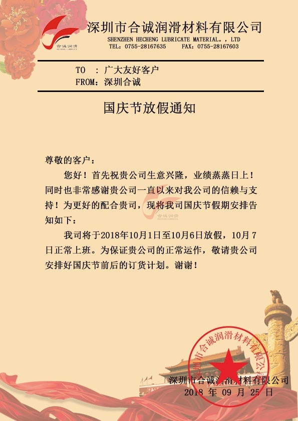 深圳合誠2018年國慶放假時(shí)間