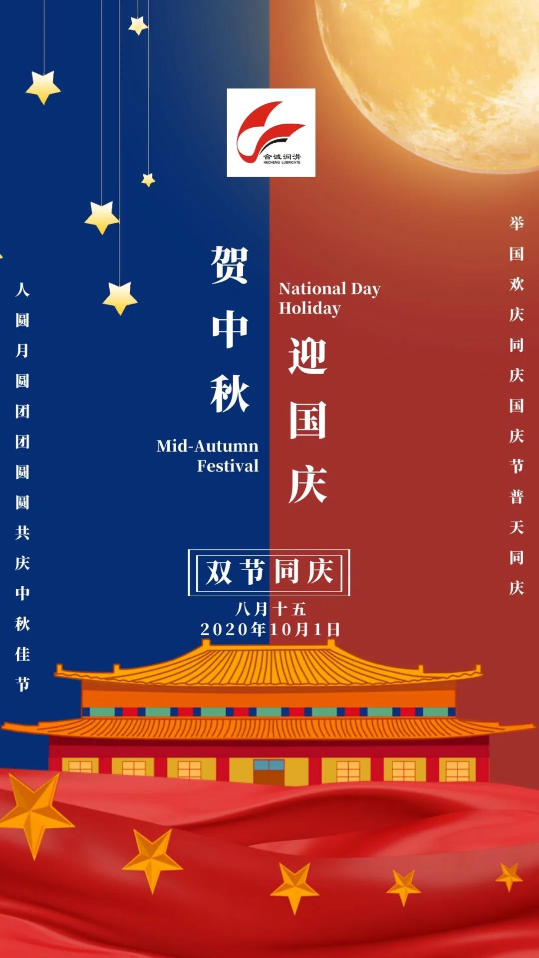 國是家的港灣,家是人的歸屬。在這個舉家團圓的日子里,我們迎來了祖國71歲華誕!在國慶和中秋雙節(jié)到來之際,深圳合誠全體員工祝愿祖國繁榮昌盛!祝福大家好事成雙,月滿人滿,盆滿缽滿,節(jié)日快樂!